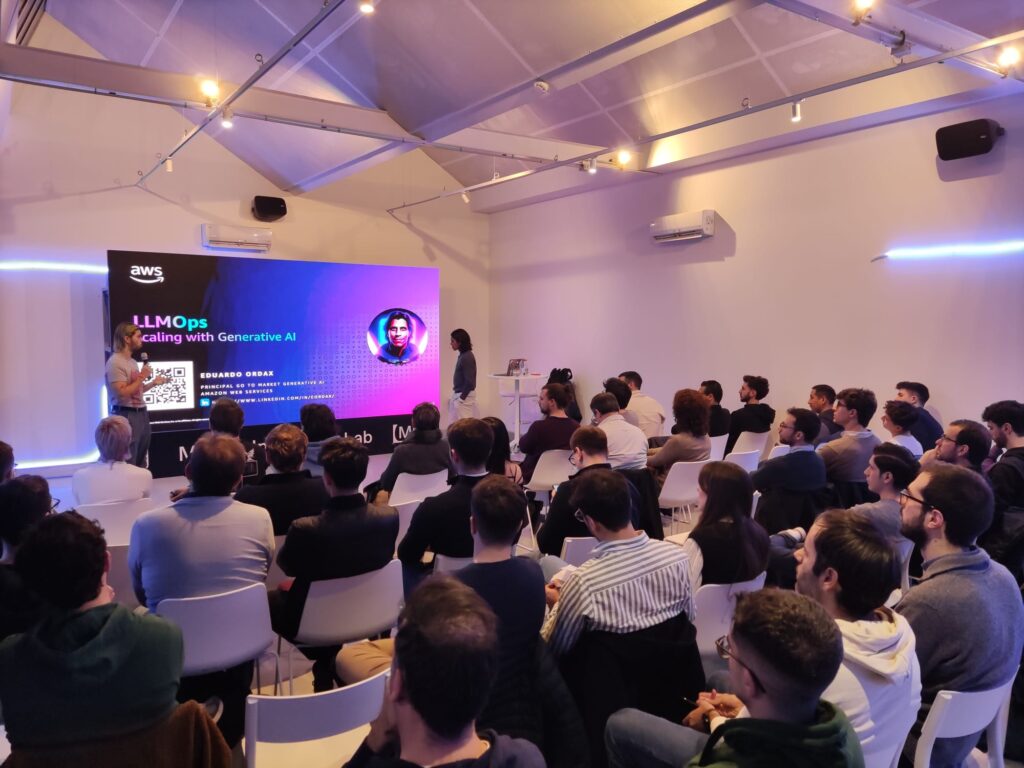 La adopción de modelos de lenguaje a gran escala (Large Language Models, LLMs) está revolucionando el mundo de la inteligencia artificial en cómo concebimos y desarrollamos soluciones empresariales. Durante el reciente Madrid Machine Learning Meetup, celebrado en Madrid Innovation Lab, tuvimos el privilegio de escuchar a Eduardo Ordax, responsable de IA Generativa en AWS para la región EMEA, quien nos sumergió en el fascinante mundo del Large Language Model Operations (LLMOps), una evolución necesaria del Machine Learning Operations (MLOps) tradicional que está redefiniendo las reglas del juego.