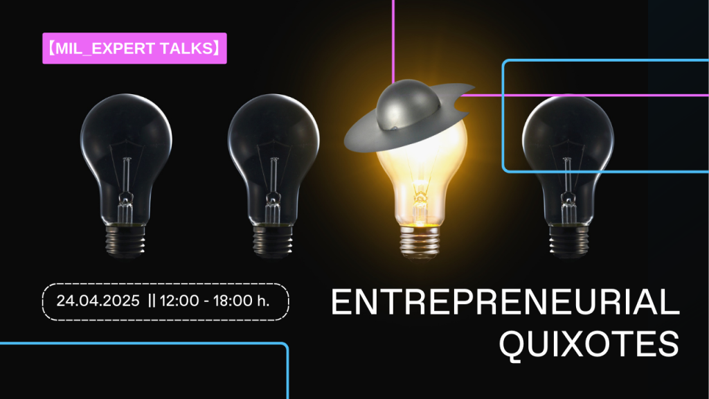 Evento educativo para estudiantes universitarios de la asignatura de emprendimiento y startups. Celebramos el día mundial del libro y centenario de Cervantes para tomar la figura del Quijote como emprendedor que debe superar los desafíos de gigantes y molinos.