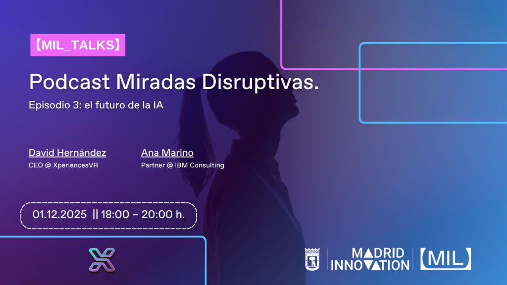 El próximo lunes, 1 de diciembre, vuelve al MIL el podcast Miradas Disruptivas, esta vez con una conversación en directo dedicada a uno de los grandes temas de nuestro tiempo: el futuro de la inteligencia artificial.