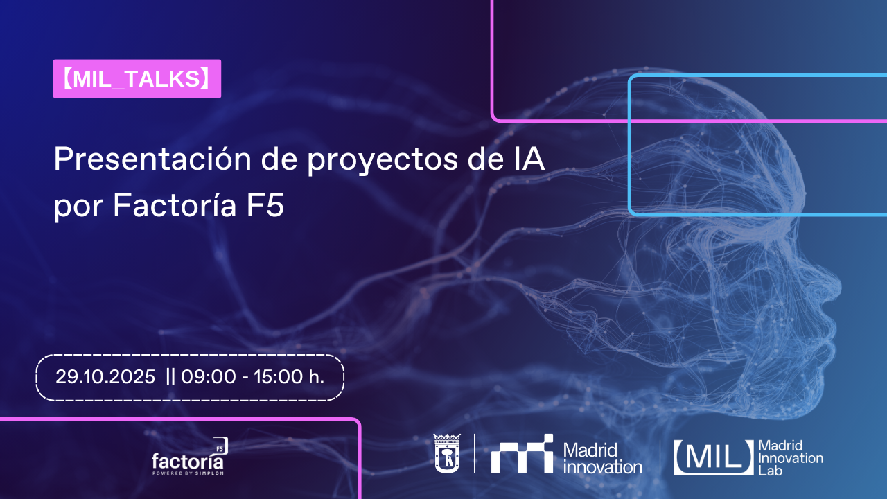 Presentación de proyectos de IA por Factoría F5 El próximo miércoles 29 de octubre, el Madrid Innovation Lab acoge la presentación de los últimos proyectos tecnológicos desarrollados por el alumnado de Factoría F5, una red de escuelas digitales inclusivas, solidarias y gratuitas especializada en formar a nuevos perfiles para el sector tecnológico. Durante la jornada, […]